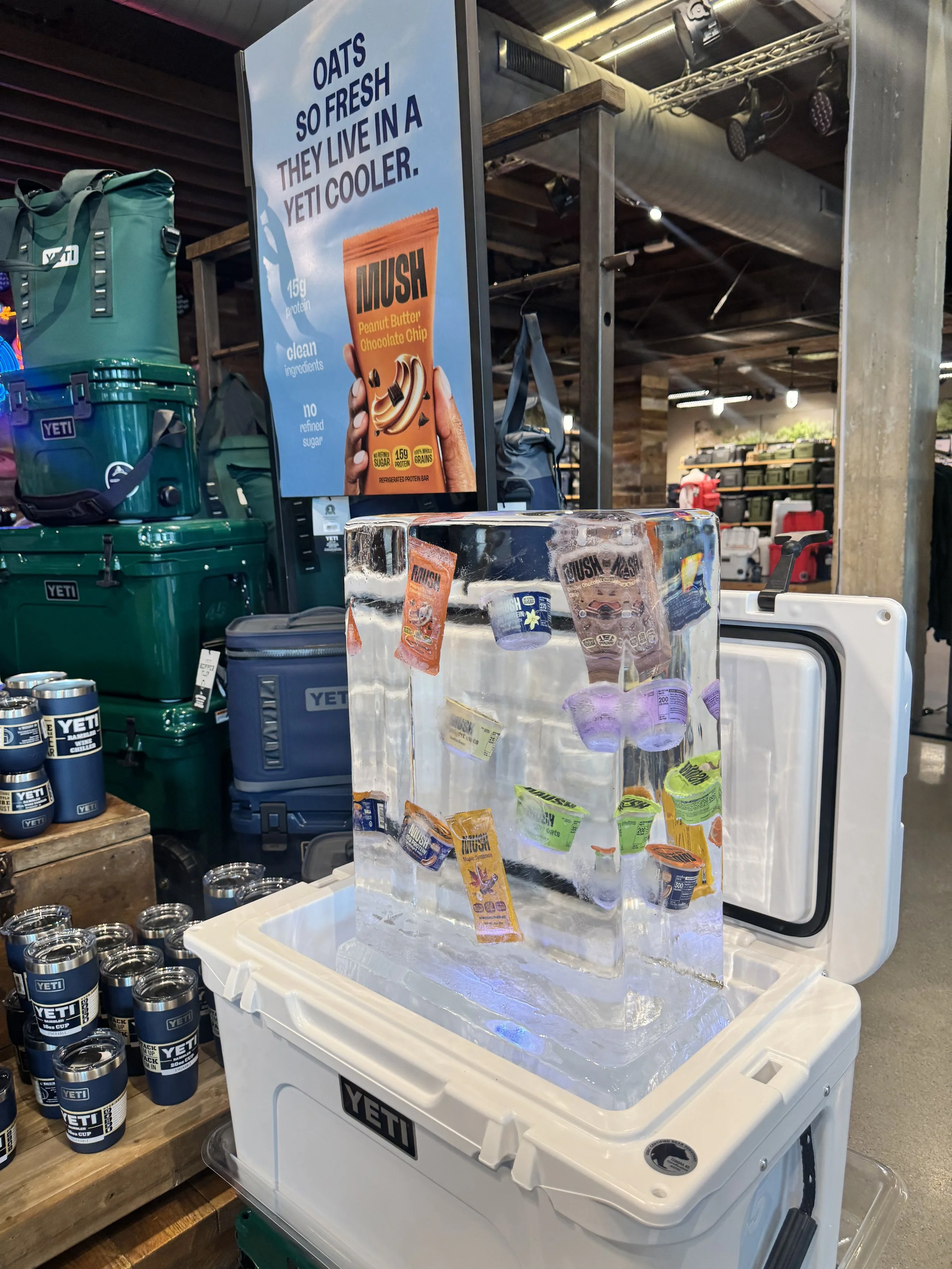 Produced an immersive brand collaboration event for MUSH and YETI, centered on the message that MUSH “stays cool” with YETI. The experience featured creative ice-based installations, live music, product sampling, and custom frozen treats. Guests were invited to interact with ice bath activations featuring University of Texas football players, creating a high-energy, memorable moment that tied the brands together in a bold, sensory way.